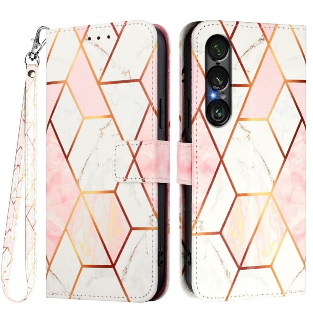 Sony Xperia 1 VII Fodral Läder Marmor Rosa / Vit