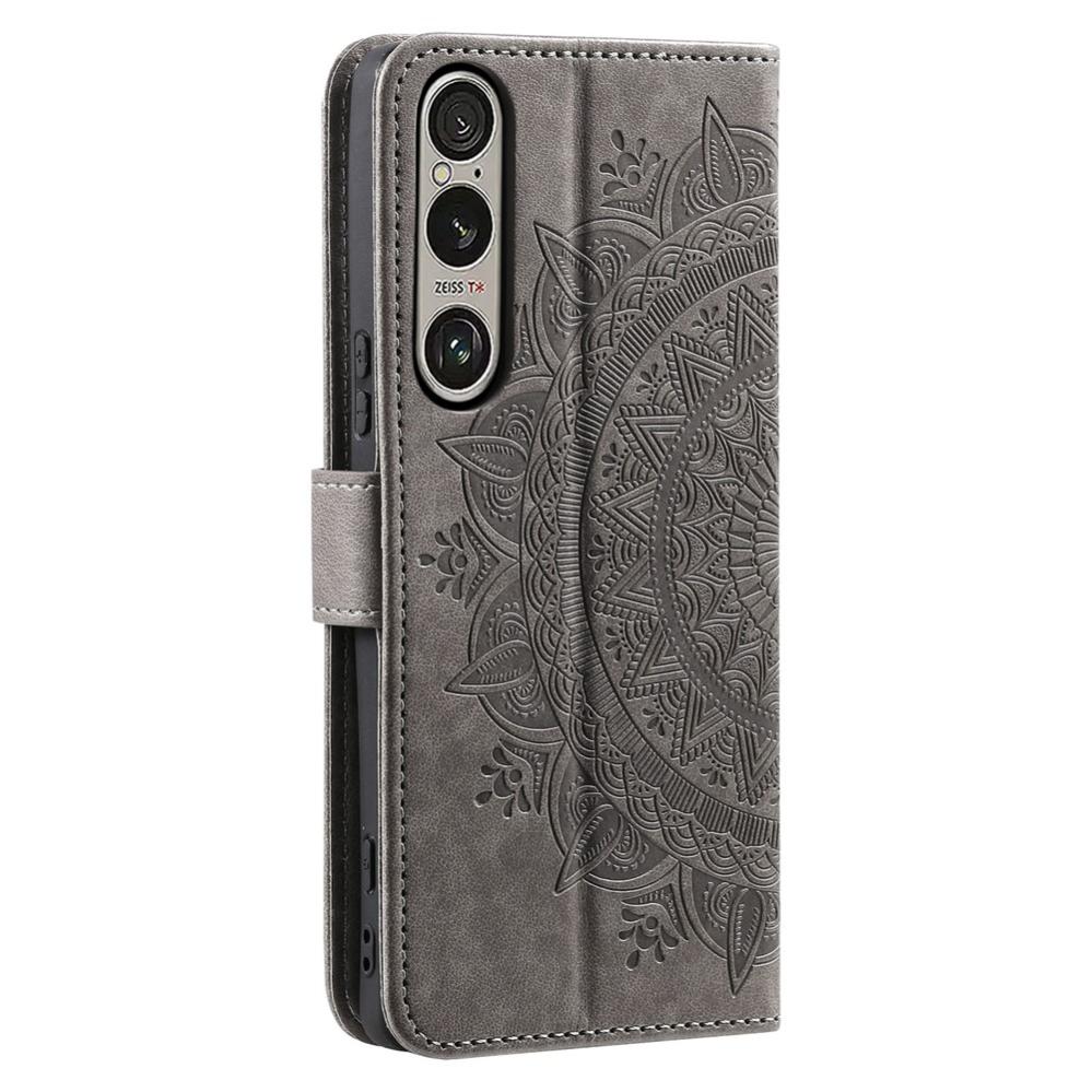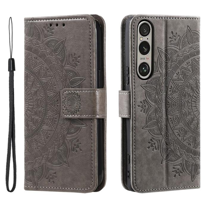 Sony Xperia 1 VII Fodral Mandala Läder Grå