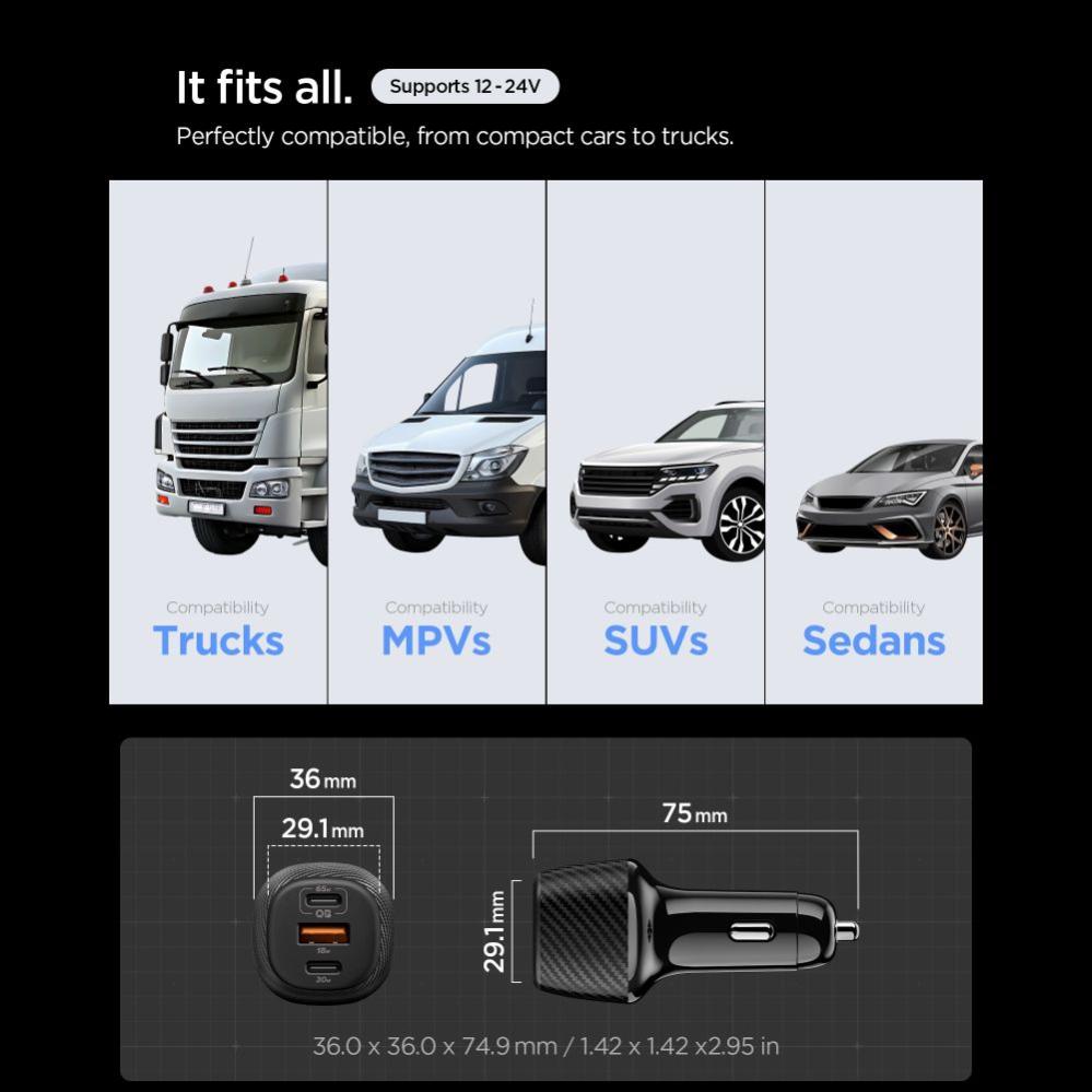 Spigen 113W USB-C / USB-A Billaddare Essential Svart