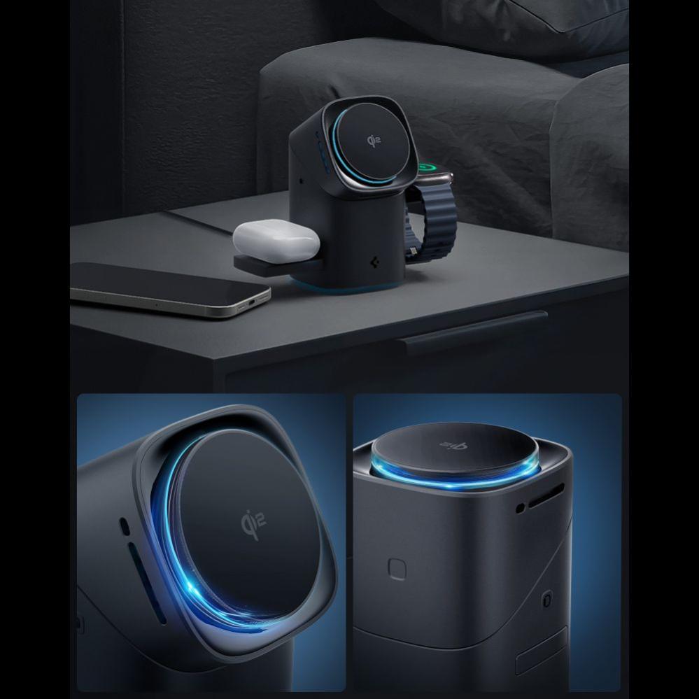 Spigen 3in1 Qi2 Magnetisk MagSafe Trådlös Laddare Svart