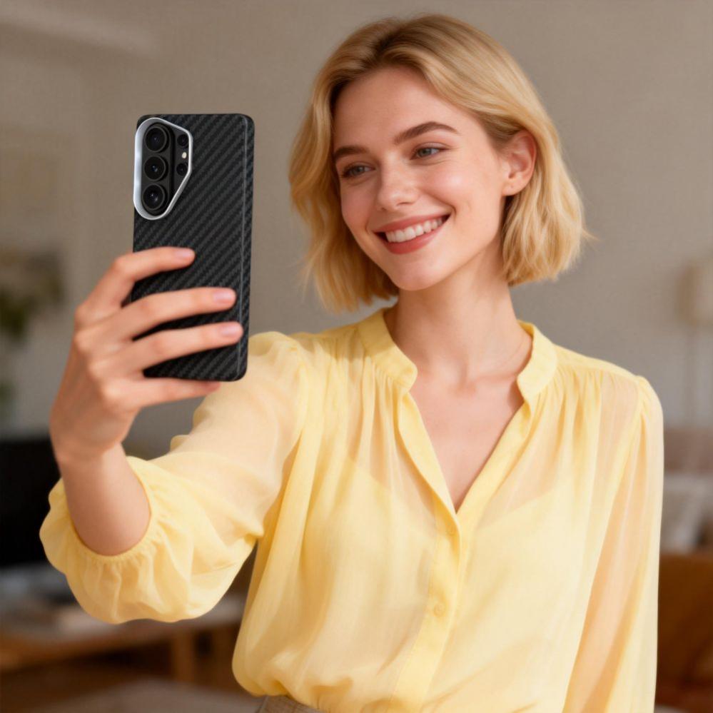 Skydda telefonen med ett slimmat skal som förenar trygg vardagsanvändning, MagSafe-funktion och stilren finish. Skalet från Tech-Protect är tillverkat i tåligt polykarbonat som står emot repor, stötar och slitage, medan karbonytan ger ett distinkt, modernt uttryck. Den eleganta kameraramen adderar ett extra skyddslager för dina linser.